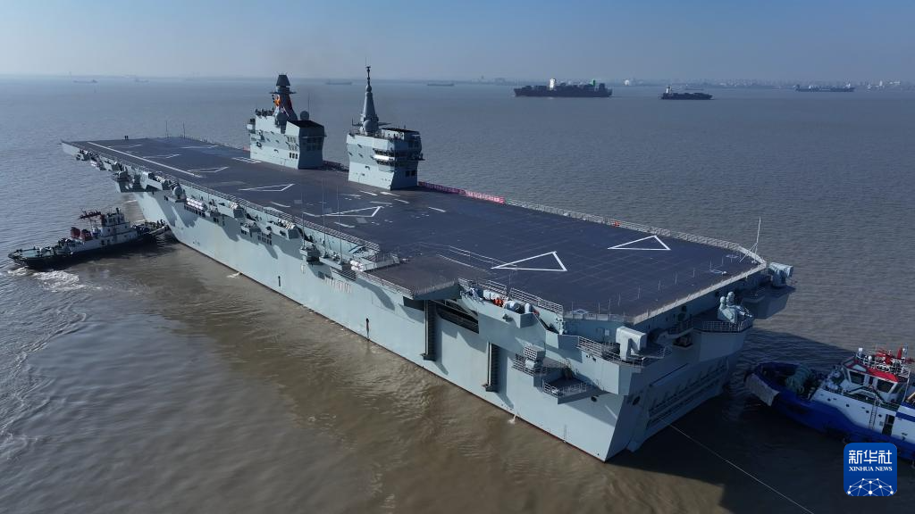 11月14日9时许,我国076两栖攻击舰首舰四川舰从上海沪东中华造船厂码头解缆启航,赴相关海域开展首次航行试验任务。